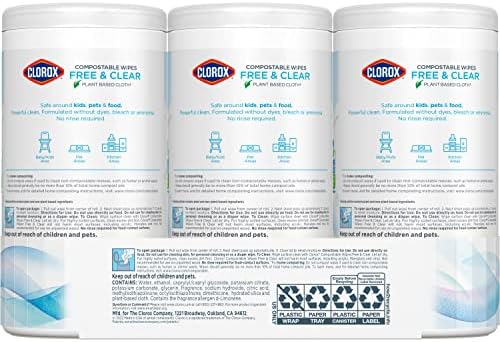 FAMILY FRIENDLY: Clorox Free & Clear Compostable Wipes are formulated without dyes, bleach or ammonia to get the surface clean you want from the brand you trust