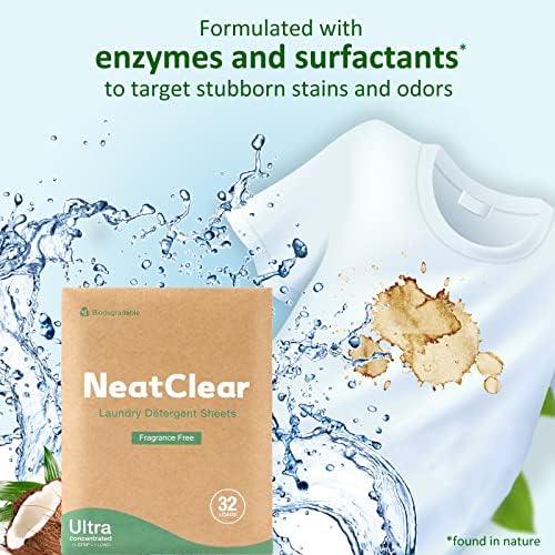 ENVIRONMENTALLY FRIENDLY – Our packaging is made of biodegradable kraft paper, instead of plastic often found in the majority of laundry detergents on the market. Those laundry detergents even contain up to 90% water. Cut down plastic and water waste by switching to NeatClear laundry detergent sheets (and thus, our carbon footprint)