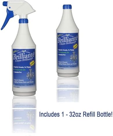 Brilliante Crystal Chandelier Cleaner – Manual Sprayer 32oz Environmentally Safe, Ammonia-free, Drip-dry Formula, Made in USA (2 Pack)