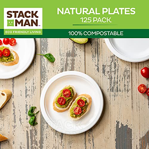 7 Inch Paper Plates: Serve Full Meals In Convenient Style Compostable Food Plates. Perfect To Serve A Main Dish With Sides. The Biodegradable Plates Makes A Great Choice For Your Daily Meals Or Restaurants, Food Trucks, To-Go Orders, Special Events, And Other Types Of Food Service Environments. 100% Sugarcane Fiber: The Seven Inch Plate Is Made Of 100% Sugarcane Fiber, A Sustainable, Renewable, And Biodegradable Material. A Great Alternative To Traditional Paper Or Plastic, The Disposable Plate Offers The Same Sturdy Function And Easy Cleanup, Yet It S Completely Tree- And Plastic-Free. 100% Compostable: Since It’S Made From 100% Sugarcane Fiber, The Plate Can Be Commercially Composted (No Need To Send It To A Landfill). The Plate Offers A Disposable Design That Will Degrade Quickly, Which Means Convenient Cleanup For You, Your Customers, And The Planet. This Product Meets Astm D6400 Or D6868 And Is Intended To Be Composted In A Municipal Or Commercial Facility Operated In Accordance With Best Composting Management Practices. Hot Or Cold Use: These Plates Can Be Used For Hot Or Cold Food Items. It Offers Reliable Strength And Does Not Contain Any Plastic Or Wax Lining. Microwave-Safe: The Plates Are Microwavable Freezable. Oil And Cut-Resistant. Note: Hot Foods Can Cause The Plates To Perspire And Condensation To Form At The Bottom.Perfect For Any Occasion: With A Wide Range Of Products And A Classic Design, Stack Man Provides Premium Products And Peace Of Mind That You Are Providing All-Natural Organic Tableware For Your Family And Friends. Perfect For Camping, Picnics, Lunches, Catering, Bbqs, Events, Parties, Weddings And Restaurants.