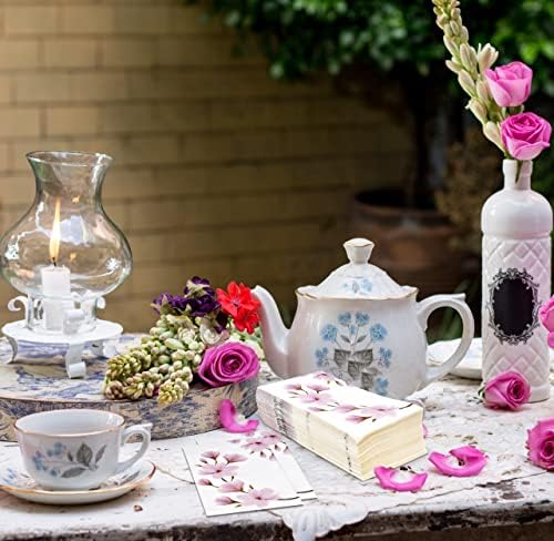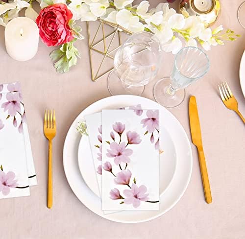 100 Floral Pink Magnolia Guest Napkins 3 Ply Disposable Paper Pack Spring Flowers Dinner Hand Napkin for Bathroom Wedding Holiday Anniversary Birthday Tea Party Bridal & Baby Shower Decorative Towels