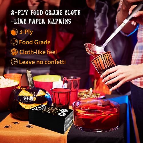 100 Halloween Napkins Guest Towels Disposable 3 Ply Nightmare Before Christmas Black Jack Paper Hand Napkins for Bathroom Dinner Lunch Party Supplies Happy Halloween Skull Decorative Napkins