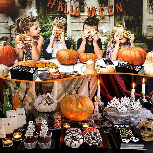 ELEGANT DESIGN — Design with Halloween elements like skeletons and the letter “Happy Halloween” in eco-friendly printing and bright colors. No worry about color fading. 100% food grade and durable for party table decoration and decoupage.