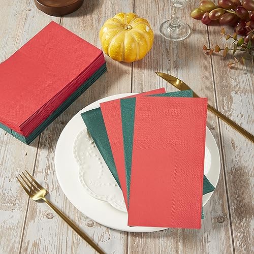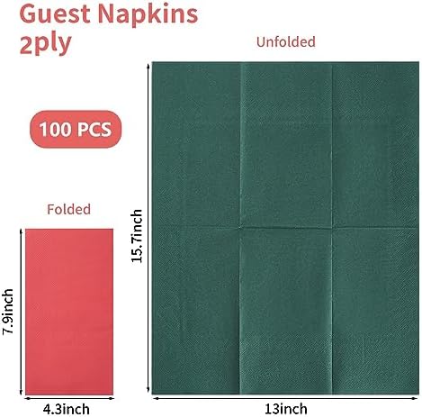 100 Pack Cocktail Napkins 2-Ply Red and Dark Green Hand Towels Dessert Disposable Napkins for Dinner Wedding Birthday Party Bridal Anniversary Reception Event, Unfold 13 x 15.7, Fold 4.3 x 7.9 Inches