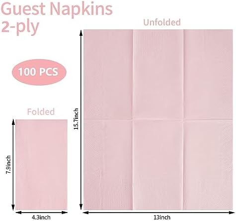 100 Pack Cocktail Napkins 2-Ply Pink Hand Towels Dessert Disposable Napkins for Dinner Wedding Birthday Party Bridal Anniversary Reception Event, Unfold 13 x 15.7, Fold 4.3 x 7.9 Inches