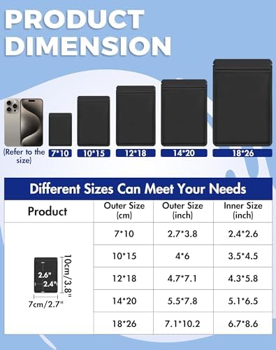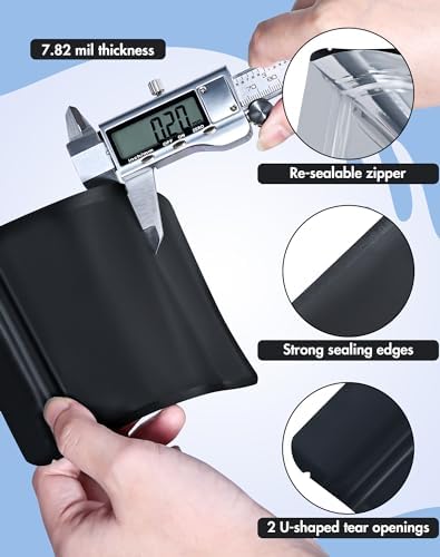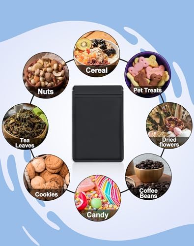Premium Quality Sealable Bags: Perfect resealable bags for food stronger with thick barrier layer, matte color surface and aluminum foil interior enhance the durability and aesthetics of the smell proof bags. The resealable zipper is strong enough and won’t pop open to ensure the food is safe inside.