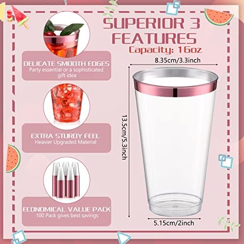 Pink Rim: our fancy disposable drinkware adopts an elegant pink rimmed design to add a touch of elegance and charm to various kinds of special events or occasions, ideal for special weddings, birthdays, parties, holiday parties, tea parties, events, and much more
