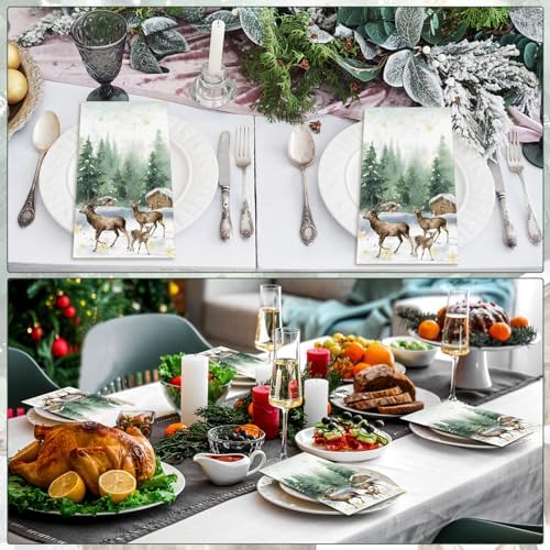 Full of Christmas Elements: these Christmas napkins are printed with elk and trees, full of Christmas elements, applying them on the Christmas party, can better add the strong festive atmosphere