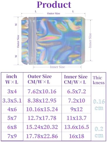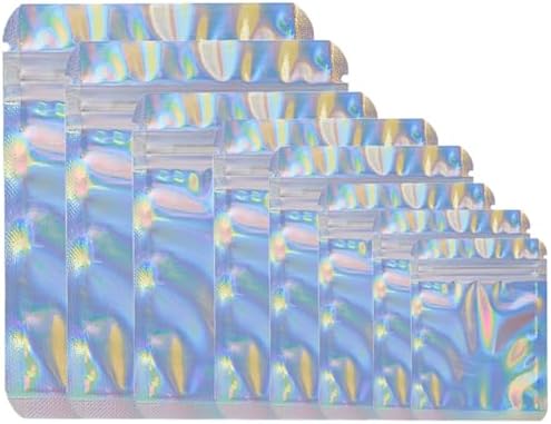 Smell Proof Bags with Ziplock & Tear Cuts – These aluminum foil pouch with zip lock is designed to keep your items clean, safe and organized. Resealable ziplock bags are easy to seal. These resealable pouches have two tear cuts on the top, you can tear these sealable tiny packaging bags quickly and easily with them. These iridescent plastic bags also support heat sealed.