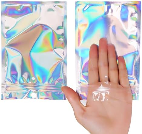 100 Pcs Holographic Resealable Packaging Bags for Small Business