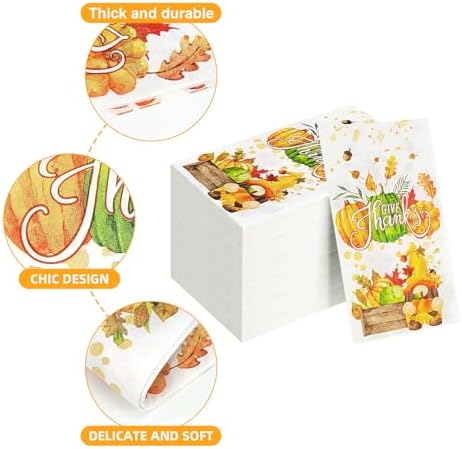 Size: Our Thanksgiving napkins measure 8.5 x 4 inches before unfolding and 17 x 12 inches after unfolding. It has a suitable size and won’t take up too much space.