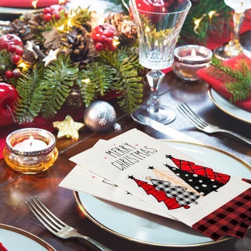 Versatile Holiday Use: these plaid Christmas tree napkins are ideal for dinner parties and gatherings, and also suitable for serving as a delightful accent in guest bathrooms, cocktail parties, or holiday buffets, seamlessly blending function and style