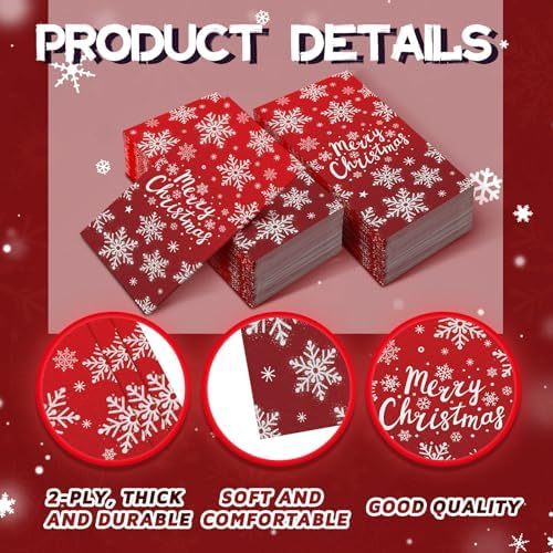 Sufficient Quantity: the package comes with 100 pieces of Christmas napkins in 2 styles, enough quantity and rich styles to meet your daily life or party use and decoration needs; Christmas themed napkins will create an unforgettable atmosphere for your Christmas party