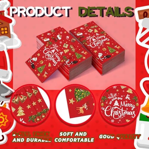 Sufficient Quantity: the package comes with 100 pieces of Christmas napkins in 2 styles, enough quantity and rich styles to meet your daily life or party use and decoration needs; Christmas themed napkins will create an unforgettable atmosphere for your Christmas party