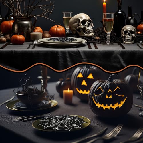 100 Pieces Halloween Guest Napkins Bulk 3 Ply Halloween Paper Napkins Halloween Disposable Hand Towels Trick or Treat Napkins for Halloween Party Supplies(Spiderweb, 13” x 13”)