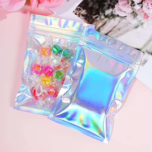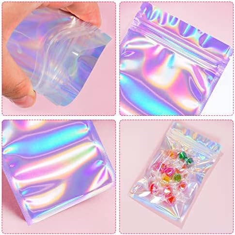 RAINBOW COLOR:Resealable smell proof bags come with rainbow color in the back and transparent in the front in order to display the product clearly. Aluminum packaging bags is waterproof, suitable to be used for store candy, cookies, soap, tea and other kind of things.