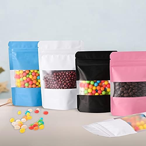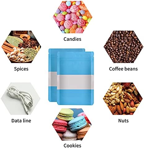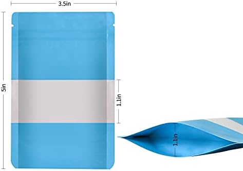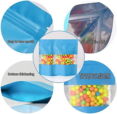 100 Pieces Smell Proof Mylar Bags, Resealable Food Storage Bags with Clear Window, Foil Pouch Stand-up Bags for Food Self Sealing Storage Supplies (Blue, 3.5 x 5 Inch)
