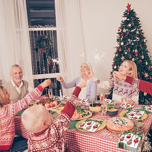 Merry Christmas Party Table Settings: These Xmas Guest Napkins Disposable party tableware kit can serve 100 guest at most, an enough quantity for a Christmas tree Theme big day especially .Serve dinner to guests in catering, buffet, potluck, events or daily meals.