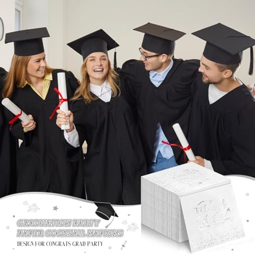 Easy to Use: these square 2024 graduation napkins measures 6.5 x 6.5 inches when folded and 13 x 13 inches when unfolded, fit beverage, appetizer, or dessert, you can use it in the guest bathroom as hand towels or as a large buffet napkin,great for table decorations.