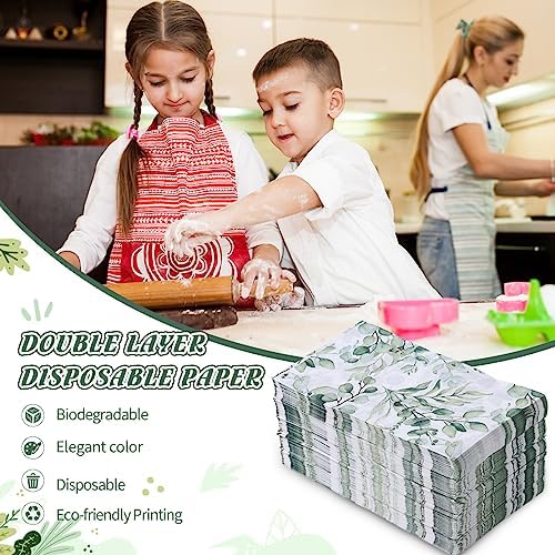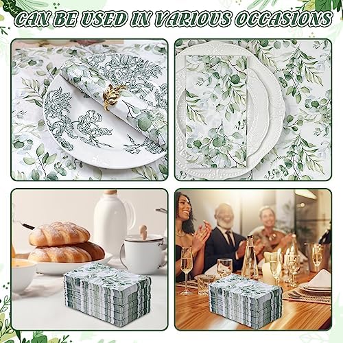 100Pcs Disposable Greenery Guest Napkins Paper Disposable Hand Towels Green Leaves Decorative Paper Dinner Hand Napkin for Bathroom Baby Shower Party Supplies Table Decor