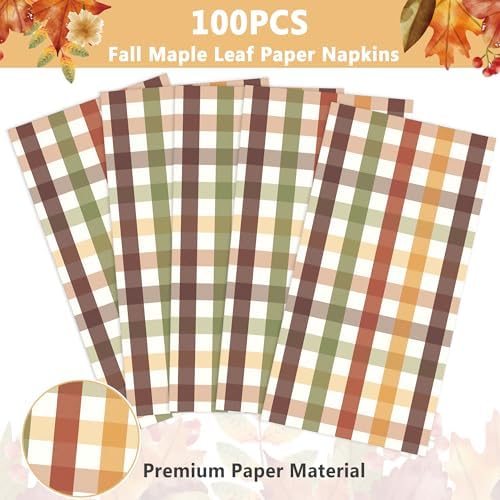 100Pcs Fall Napkins Disposable Gingham Paper Napkins for Thanksgiving Fall Autumn Harvest Party ,Disposable Buffalo Plaid Paper Guest Towels for Bathroom, Powder Room, Dinning, Kitchen Decorations
