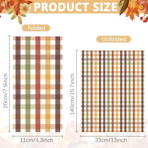 Premium Quality: Our Disposable Gingham Paper Napkins are made of high-quality paper, safe and no-toxic. These fall decorative napkins are 2-layer thickness, both durable and soft. They will give strong autumn atmosphere for you!