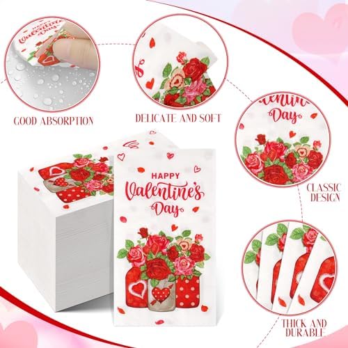 Quality Material: these disposable valentines day paper napkins are made of food grade thick paper designed with 2 layers, soft texture, fresh touch, durable paper, and highly absorbent,ideal for a valentine’s day party.