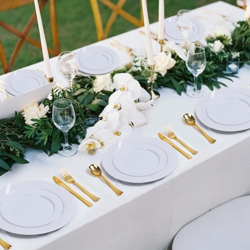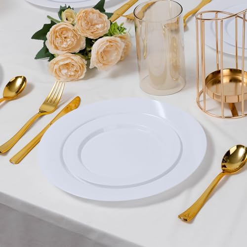 DESIGNED FOR ALL OCCASIONS: This elegant white plate set is perfect for all your formal and informal events, such as parties, weddings, birthdays, gatherings, banquet dinners, BBQs, baby showers, and graduation parties. These dinner plates are lightweight and easy to carry and arrange. You can use them to enhance the visual appeal of your event, delighting your guests and friends.