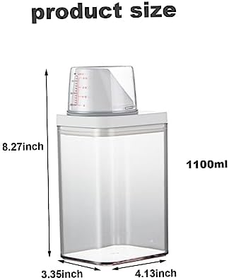 Introducing our Washing Powder Storage, the perfect solution for keeping your laundry detergent organized and easily accessible. This 1100ml dispenser with a measuring cup is designed to store your washing powder, providing a convenient and mess-free laundry experience. Our laundry detergent dispenser is crafted from high-quality and durable materials, ensuring long-lasting use. The sturdy construction and secure lid keep your detergent powder protected from moisture, humidity, and spills. No more dealing with messy detergent bags or boxes! This dispenser provides a clean and efficient way to store and dispense your laundry detergent. With its generous 1100ml capacity, our storage container offers ample space to accommodate a significant amount of washing powder. The included measuring cup allows you to dispense the perfect amount of detergent for each load, ensuring optimal cleaning results and avoiding wastage.