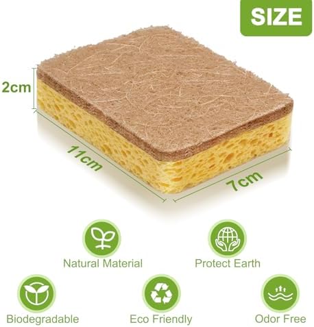100% Natural Eco Friendly Material: Made of 100% natural plant sustainable materials, wood cellulose sponge and non-scratch coconut fiber. No chemicals and toxins, healthy and safe for mother to use. Also for earth is more Eco-Friendly