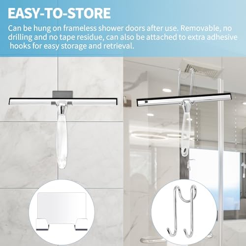 【Easy-to-store】The shower door squeegee set gives you 2 extra hooks for hanging on bathroom tiles and glass, so you can hang shower tissues, razors and towels.