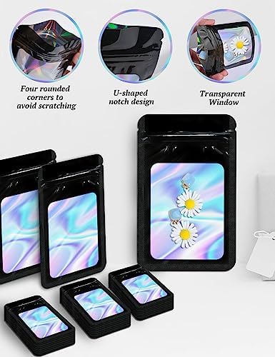 120 Pack Holographic Bags Resealable Smell Proof Bags for Packaging with Small Business Freshie Bags and Sealable Bags for Packaging (Inner Side 2.5″*3.4″, Black)