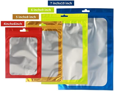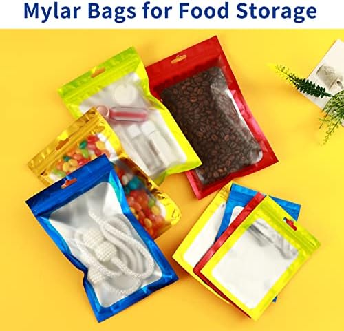 Item Name: mylar bags for food storage, ziplock bags, resealable bagsSize: 3.9 x 4.6 inches; 4 x 6 inches; 5 x 8 Inches; 6.2 x 9.3 inches;7 x 10 inchesColor: Black, Pink, Purple, Red, Blue, Green, Gold, WhiteFabric Type: Foil Material
