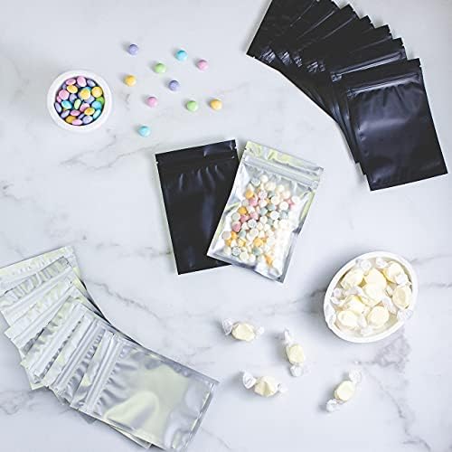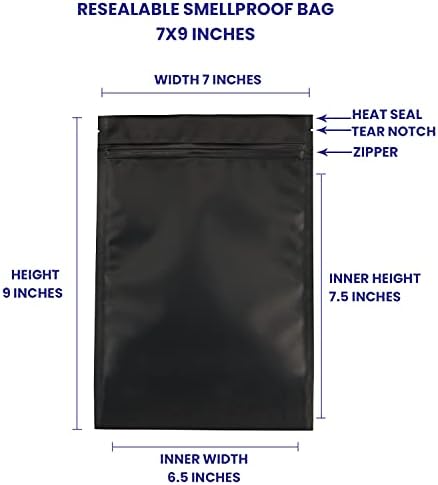 SEAL OR ZIP LOCK! Made from PE with metalized film, these small bags for packaging have a matted black back and transparent front. 100% smell proof pouch bags and food safe. You can have heat seal bags, use the zipper, or both for a tamper evidence seal.