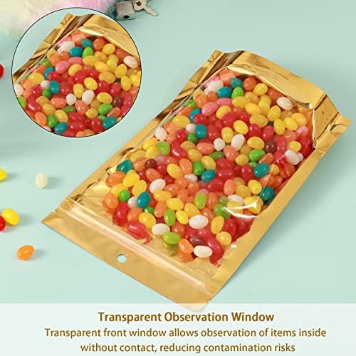 ️Visibility Feature: These smell-proof candy bags sealable and come with a transparent front-side window for easy content identification, saving time in kitchens or during inventory management, Round holes allow bags to be hung and chained for easy organization and display.