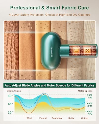【Triple Protection Design, More Safer】Safety is a our priority purpose. Ranvoo Fabric shaver prevents any fabric from being damaged by its tight honeycomb stainless steel design, When the protective cover is loose or the plush box is not installed correctly, the lint shaver will automatically cut off the power with Smart Security Systems. In addition, the clothes shaver will automatically power off after being fully charged.