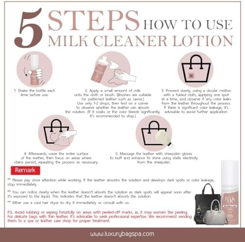 If leather of the bag becomes black spot or discolored after exposing lotion, please stop and do not continue because leather is not water resistance.
