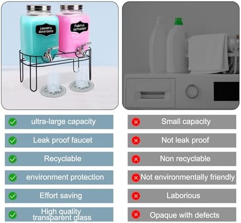 Effortless Dispensing: Say goodbye to messy spills and fumbling with small detergent bottles. Our 1.25-gallon glass jars (each) with 304 stainless steel taps provide a steady and smooth flow of detergent, making laundry time more efficient and enjoyable.