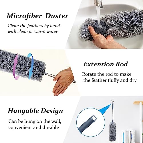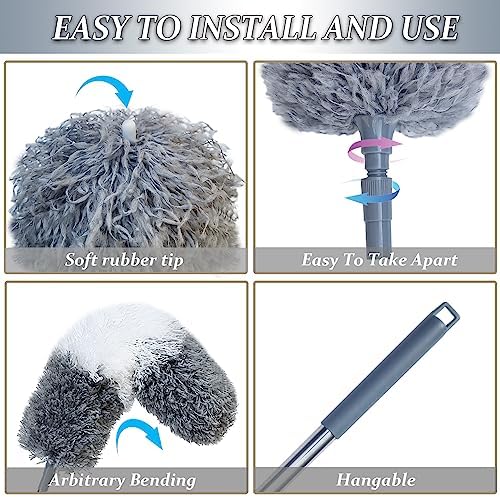 【WASHABLE DUSTER】: Our duster is easy to disassemble and wash. Just remove the duster head from the pole, wash it with warm water, then hang it in a ventilated place to make it fluffy for next use.
