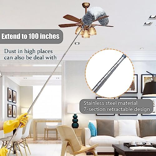 【BENDABLE DUSTER HEAD 】: The 360° bendable duster head with strong electrostatic adsorption, can quickly capture and absorb fine dust and hair on the ceiling fan, walls, tall corners, etc.