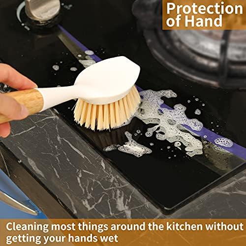 [SCOPE OF APPLICATION] Dish brush with handle is great for cleaning dishes, pans, pots, sink, stoves kitchen utensils, Dish scrub brush is also ideal for cleaning your countertop, bathtub, most household cleaning. Comes with pack of 2.