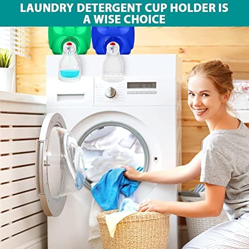 Fits most economic sized bottles: The detergent cup holder fits economy sized liquid detergent and fabric softener container spouts that are 1.7in in diameter and slightly bigger ones.