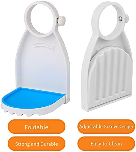 ✨PACKAGE INCLUDED -Two cup holders are included in the set, each with a screw and a blue removable silicone pad. The cups are not included. The adjustable range is 1.6-1.7 inches, and it is compatible with the most economical-sized liquid detergent and fabric softener container spouts.
