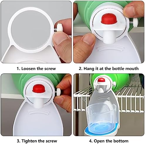 Easy to Install: Simply place the cleaning agent holder at the top of the cleaning agent bottle mouth, tighten the adjustable screws to secure the bracket in place, and put down the folded bracket bottom plate to use it.