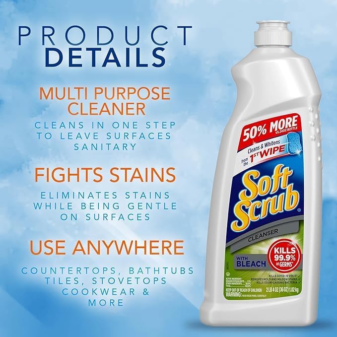 32-Ounce Soft Scrub Cleanser:: Each bottle contains 32 ounces of soft scrub Cleanser with Bleach, providing a long-lasting cleanser and excellent value.