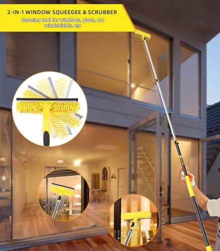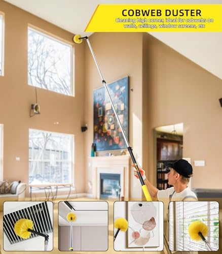 🏠🧹【Perfect For Various Cleanning Needs】Opow high reach cleaning sets with detachable cleaning heads options easily help you clean all kinds of high weird angles and awkward surfaces. four duster included: Flexible CEILING FAN CLEANER – perfect for conquering those hard-to-reach areas effectively. Scratch-free microfiber FEATHER DUSTER-guaranteed effective dust removal while protecting the surfaces. COBWEB DUSTER reaches into corners, ceilings, and skirting areas. 2-IN-1 WINDOW SQUEEGEE Cleaner