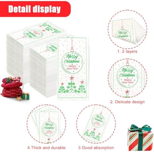 Safe Quality: our Christmas bathroom disposable hand towels are made of high quality paper material, comfortable to touch, safe and no crumbs, strong water absorption and tear resistant. the pattern on the paper guest towel is no ink loss, you can use it with confidence