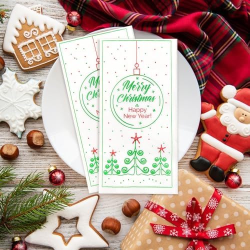 200 Christmas Disposable Guest Hand Towels for Bathroom, 2 Layers New Year Guest Napkins, Xmas Guest Decorative Paper Hand Towels for Christmas Dinner Party New Year Dinning Decor