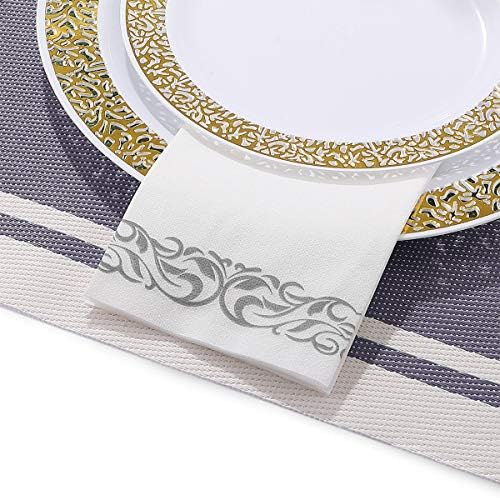 Perfect For Any Occasion: Compliment any setting with our disposable silver napkins, Use for Drying Hands, Wiping Sink, Surfaces Cleaning and other general-purpose drying applications. Also, the perfect formal place setting accent for a family dinner party! These disposable hand towels will suit your needs