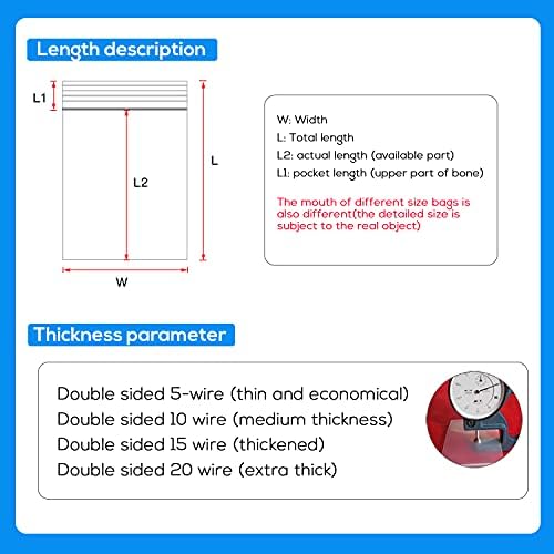 Material: Made of polyethylene, odorless and non-toxicQuantity of Plastic Zip Bags: 200 piecesThickness: 1mmColor of Plastic Bags: Clear and transparentClosure: Reclosable zipper